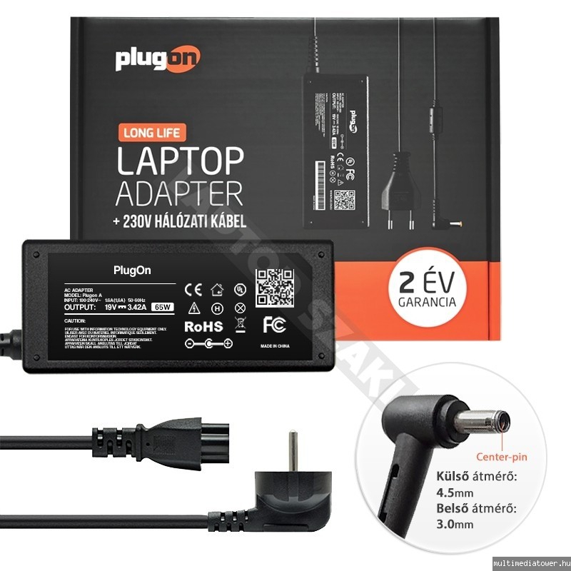 PlugOn Asus 65W 4.5mm x 3.0mm notebook töltő 17645