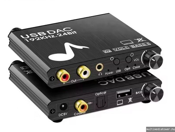 USB DAC 192kHz 24Bit DAC + fejhallgató erősítő, Coaxial + USB + Toslink Stereo