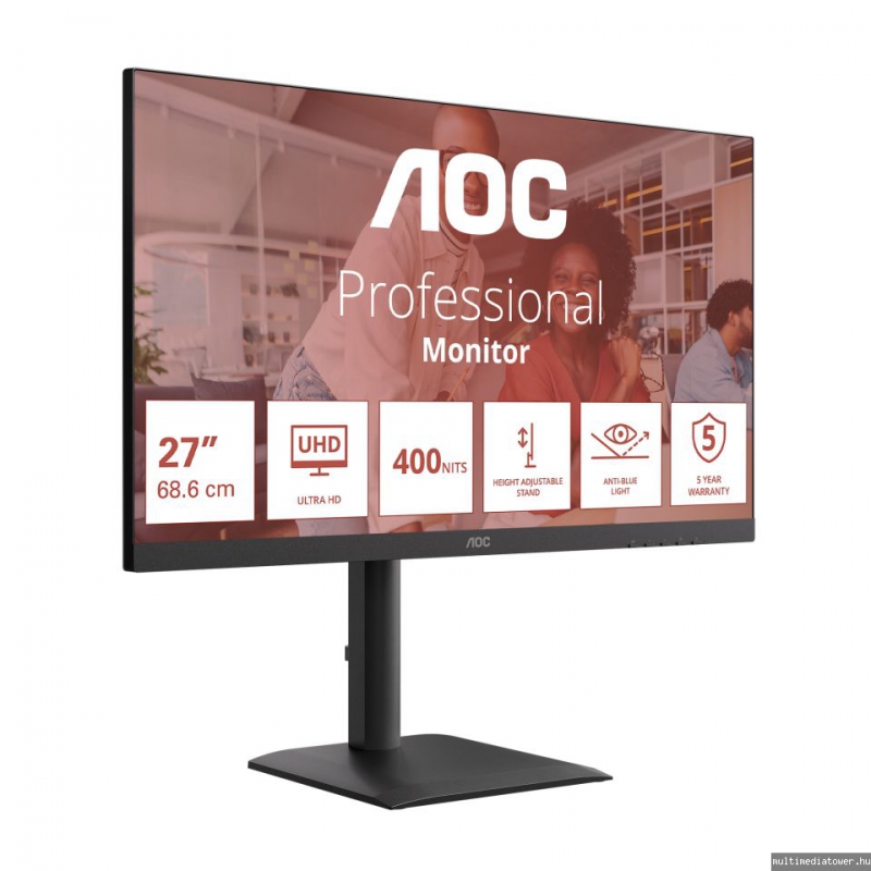 27", 3840x2160, 60Hz, IPS, 1000:1, 400cd, 4ms, DP, 2xHDMI, áll. mag., forgatható, fekete