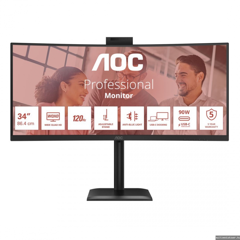 34", 3440x1440, VA, 120Hz, 4ms, 350cd/m2, 3500:1, 1xDP, 2xHDMI, áll. mag.