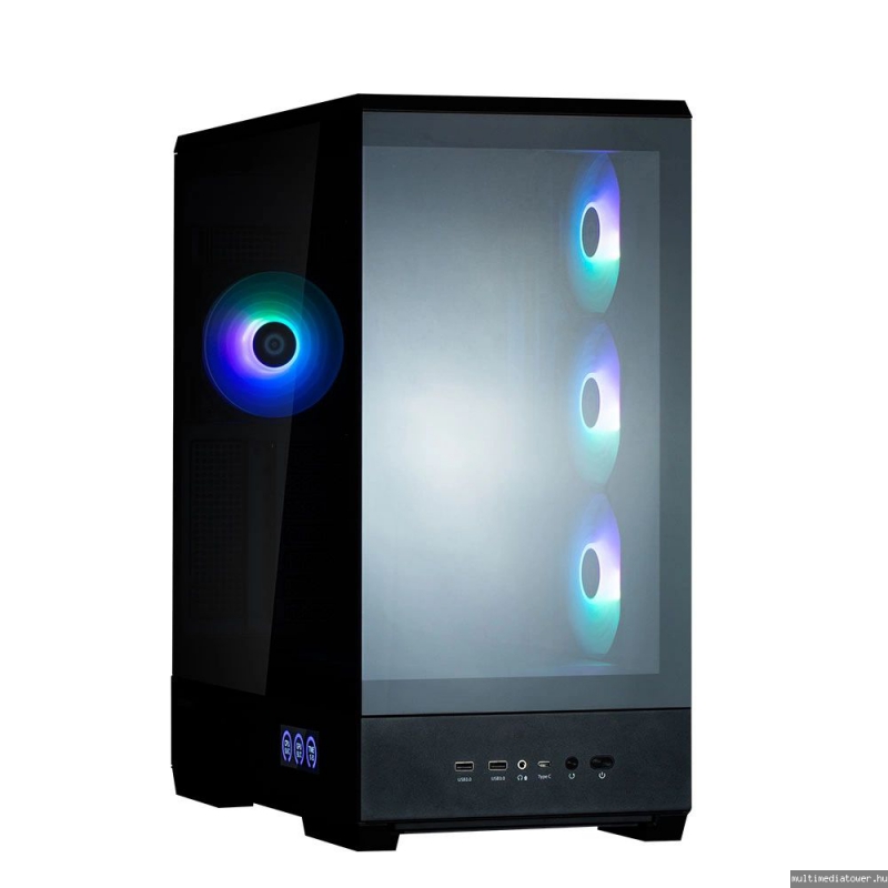 Tápegység nélküli ház, 0x5.25, 2x3.5, 2x2.5 HDD hely, 2xUSB3.0, 1xUSB-C, Audio, 4x12cm
