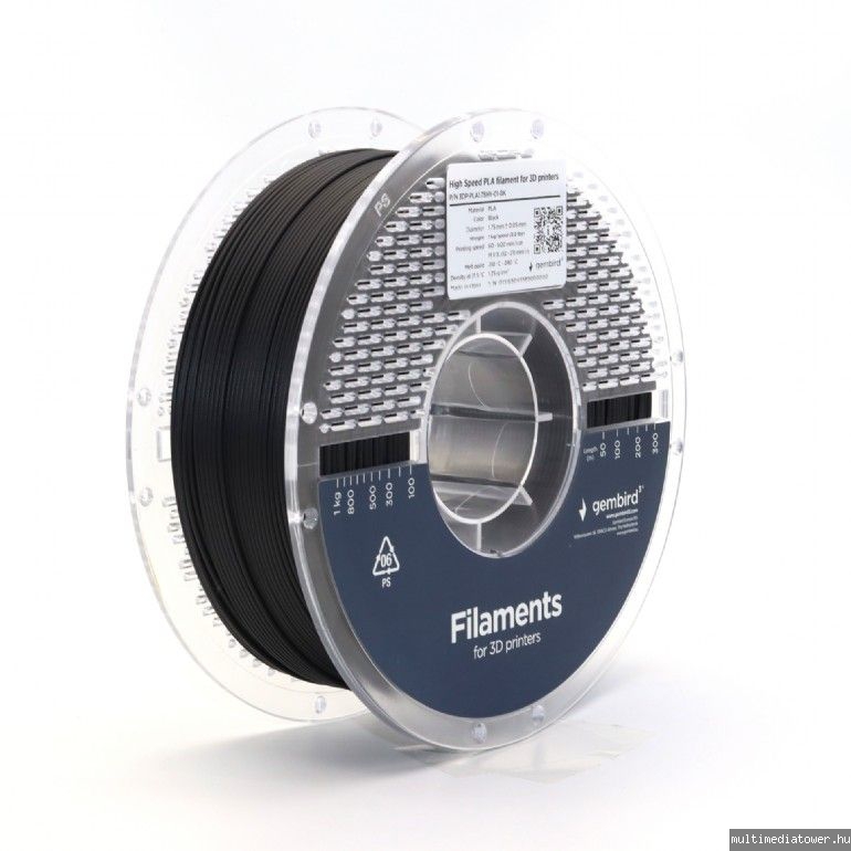 Gembird PLA High Speed Filament 1.75mm Black 1 kg 3DP-PLA1.75HY-01-BK