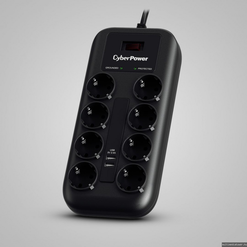 CyberPower P0820SUF0-DE Túlfeszültségvédő Kapcsolóval 8DIN 1,8m Black