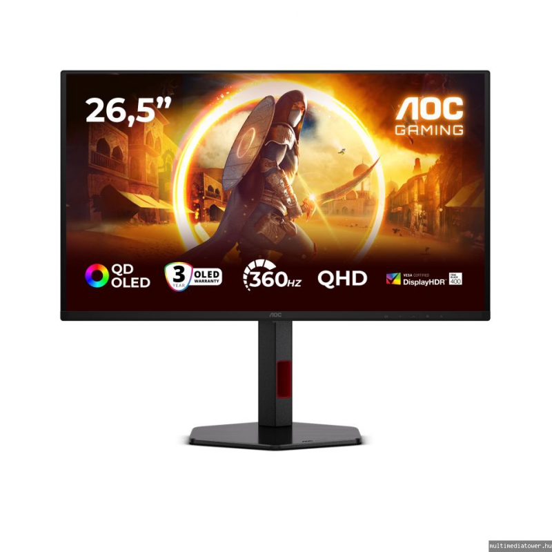 27", 2560x1440, 360Hz, OLED, 1000:1, 1000cd, 0.03ms, DP, 2xHDMI, áll. mag., forgatható, fekete