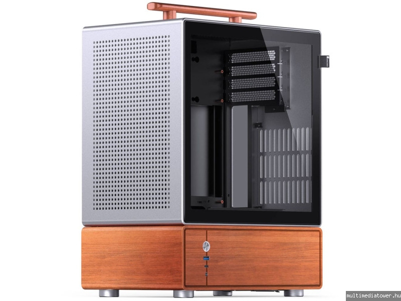 A ház 3 mm vastag alumíniumot és igényes fa betéteket kombinál, így jól ötvözi a technikás és elegáns megjelenést. A beépített fogantyú megkönnyíti a szállítást, és hangsúlyozza a ház mobil jellegét.