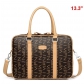 Női notebook táska, feliratos mintával barna alapon. Elegáns viselet,